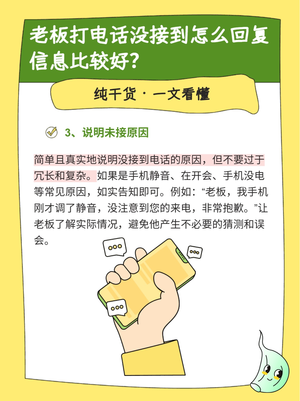 不接电话礼貌回复短信短信回复内容如下:,,“您好,感谢您的来电,因我正在忙碌或无法接听电话,请您见谅。稍后我会回复您的消息,如有急事,请发送短信至我的手机号,我会尽快回复。”... 2025-08-15 - [阅读全文]
